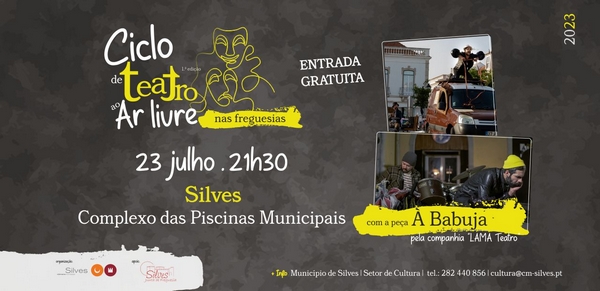 A iniciativa Ciclo de Teatro ao Ar Livre, prossegue no dia 23 de julho, pelas 21h30, na Freguesia de Silves, com a peça “À Babuja” em frente às Piscinas Municipais.