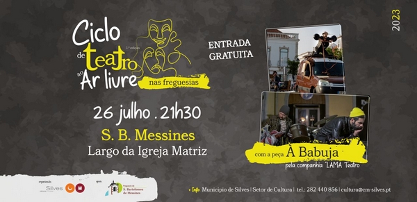 A Freguesia de São Bartolomeu de Messines recebe no próximo dia 26 de julho, às 21h30, no Largo da Igreja, “À Babuja”, o espetáculo itinerante promovido pelo Município de Silves, nas diferentes freguesias do concelho.