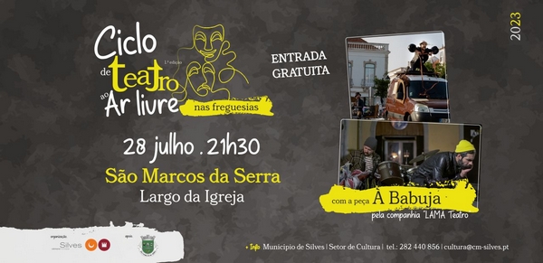 A próxima sessão do Ciclo de Teatro tem lugar no dia 28 de julho, às 21h30, no Largo da Igreja, na Freguesia de São Marcos da Serra.
