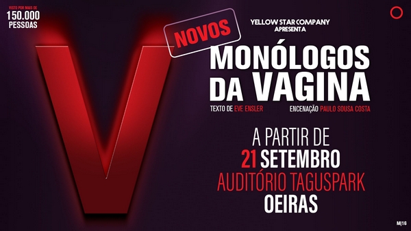 Monólogos da Vagina vão regressar a cena, com um novo elenco e com novos Monólogos, visto por mais de 150.000 pessoas com mais de 45 cidades percorridas. A partir de dia 21 de setembro de quinta a sábado, às 21h00 no Auditório do Taguspark em Oeiras.