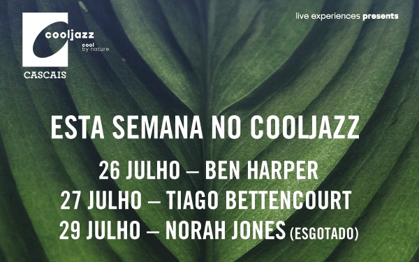 Arranca amanhã a última semana de concertos na 18ª edição do COOLJAZZ. São três concertos imperdíveis no Hipódromo Manuel Possolo, em Cascais: Ben Harper (quarta-feira,26 de Julho), Tiago Bettencourt (quinta-feira, 27 de Julho) e Norah Jones (sábado, 29 de Julho – já esgotado).