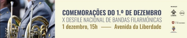 A Avenida da Liberdade recebe o Desfile Nacional de Bandas Filarmónicas integrado nas comemorações do 1.º de Dezembro – dia em que se assinala a Restauração da Independência em Portugal.