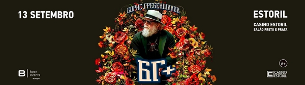 O Salão Preto e Prata do Casino Estoril acolhe, a 13 de Setembro, pelas 20 horas, o músico russo Boris Grebenshchikov com o seu novo grupo “BG+”. M/6. Preços: De 49€ a 199€.