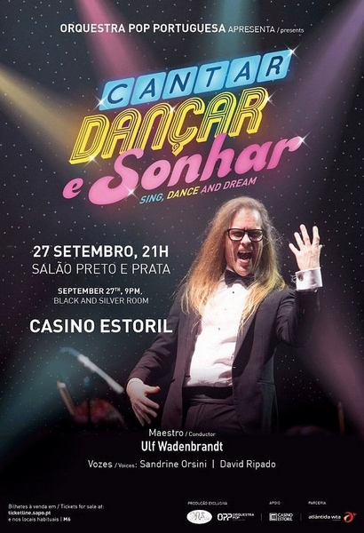 A Orquestra POP Portuguesa apresenta, no dia 27 de Setembro, pelas 21 horas, o espectáculo “Cantar, Dançar e Sonhar” no Salão Preto e Prata do Casino Estoril. M/6. Preços: De 20€ a 35€.