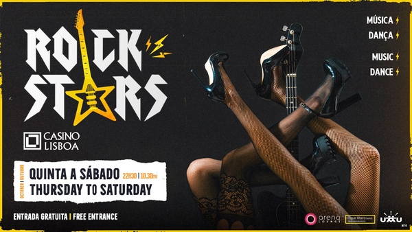 O Arena Lounge do Casino Lisboa acolhe o espectáculo “Rock Stars” de Quinta-Feira a Sábado, das 22h30 às 23h00. Espectáculos agendados de 31 de Outubro a 2 de Novembro | 7 a 9 Novembro | 14 a 16 Novembro | 21 a 23 Novembro | 28 a 30 Novembro. A entrada é gratuita.