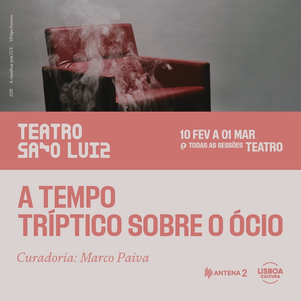 De 10 de fevereiro a 1 de março, vão estrear três espetáculos do ciclo A Tempo, Tríptico sobre o ócio, com curadoria de Marco Paiva.Três atos, três duplas de artistas, três diferentes linguagens, nas próximas três semanas. Os artistas partilham às segundas-feiras o processo de criação com o público, em sessões de entrada livre, e apresentam os espetáculos de quarta a sábado, tudo com interpretação em Língua Gestual Portuguesa, legendas em português e áudio comentário poético.