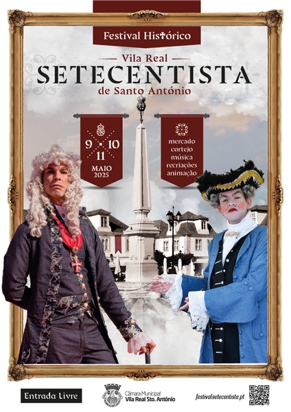 De 9 a 11 de maio de 2025, Vila Real de Santo António regressa ao século XVIII com o Festival Histórico – Vila Real de Santo António Setecentista.