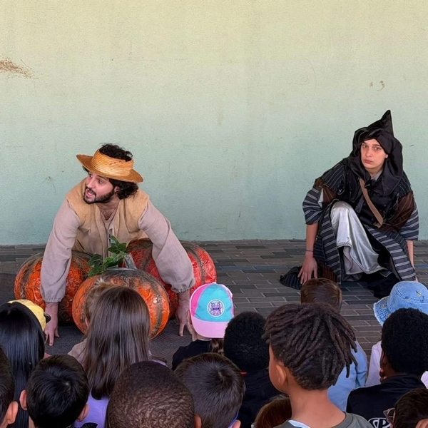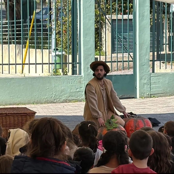 Assistiram os alunos dos 3 aos 10 à peça de teatro: As Três Abóboras, para as escolas da freguesia da Mina de Água - Amadora.
