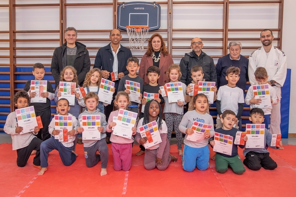 As/os 56 alunas/os do 1.º Ciclo que participaram na 1.ª fase do projeto-piloto “Judo na Escola” receberam, nos dias 3 e 7 de fevereiro, diplomas de participação e cartões. No dia 7, na Escola Básica do Bairro Alentejano, em Quinta do Anjo, o momento contou com a participação especial do ex-Judoca Nuno Delgado, que motivou as crianças com o seu exemplo e tentou transmitir-lhes os principais valores associados a esta modalidade.