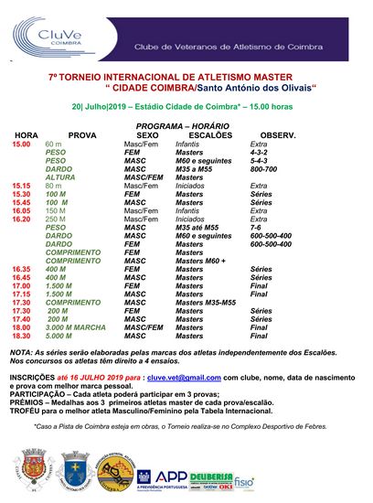Está em... início Atletismo Master 7º Torneio Internacional Cidade de Coimbra / Santo António dos Olivais