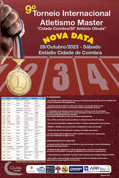 Está em... início Atletismo Pista 9º Torneio Internacional Atletismo Master "Cidade Coimbra / Stº António Olivais" - Nova Data