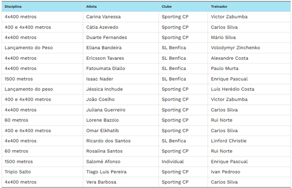 A Federação Portuguesa de Atletismo convoca 17 atletas para representar Portugal nos Campeonatos Mundiais de Pista Curta que se realizam em Glasgow (Grã-Bretanha) de 1 a 3 de março.