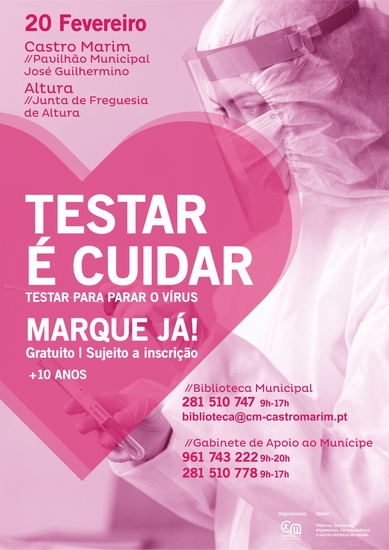 Testar para parar o vírus, continua a ser o mote desta iniciativa que vai voltar a acontecer no próximo sábado, dia 20 de fevereiro, em Altura (Junta de Freguesia) e Castro Marim (Pavilhão Municipal).
