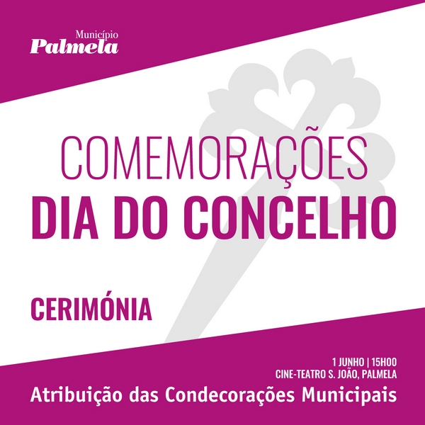 No âmbito das comemorações do Dia do Concelho (1 de junho), a Câmara Municipal de Palmela promove a Cerimónia de Atribuição das Condecorações Municipais no dia 1 de junho, às 15h00, no Cine-Teatro S. João, em Palmela.
