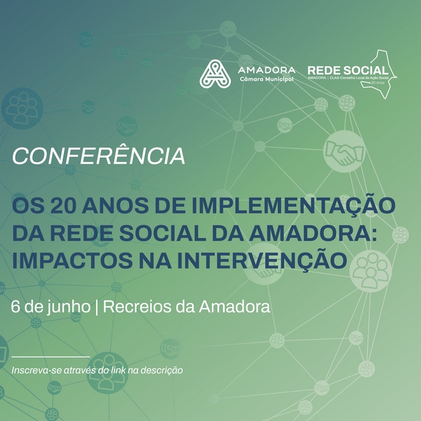 No dia 6 de junho (terça-feira), a partir das 9h00, irá realizar-se a conferência "Os 20 anos de implementação da Rede Social Amadora: Impactos na Intervenção", nos Recreios da Amadora.
