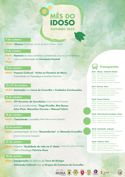 As Juntas de Freguesia, a Farmácia Central, a ARSAlentejo e a Santa Casa da Misericórdia de Mora colaboram com a autarquia na dinamização das atividades que dinamizam o Mês do Idoso.