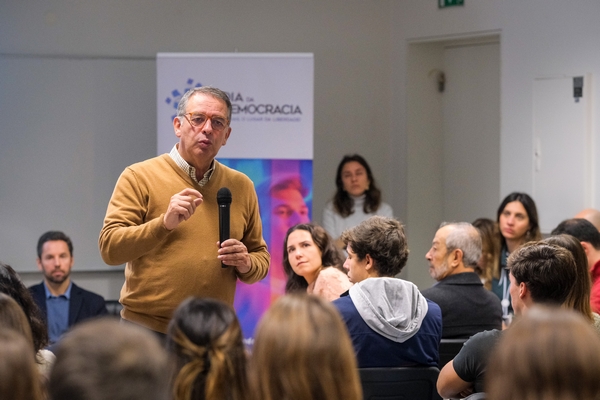 A sessão na Escola Secundária Sebastião e Silva foi a mais participada, com mais de 900 alunos a assistirem, presencialmente e virtualmente, à conversa com José Miguel Júdice.