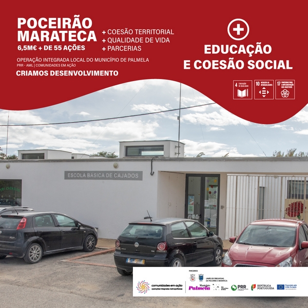 Esta intervenção insere-se na Operação Integrada Local (OIL) Poceirão e Marateca, com financiamento do Plano de Recuperação e Resiliência (PRR). Contribui para a concretização dos Objetivos de Desenvolvimento Sustentável (ODS) 4 - Educação de Qualidade, 10 - Reduzir as Desigualdades e 17 - Parcerias para a Implementação dos Objetivos.
