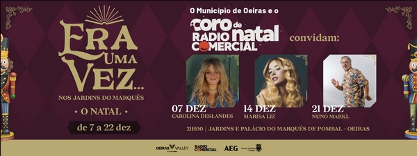 Entre os dias 7 e 22 de dezembro a magia de Natal toma conta dos Jardins do Palácio Marquês de Pombal, em Oeiras, com uma programação diversificada e muitas atividades para toda a família. Este ano, a festa tem a parceria da Rádio Comercial, que irá trazer o seu Coro de Natal para atuar durante três noites, com convidados especiais: Carolina Deslandes, Marisa Liz e Nuno Mark.