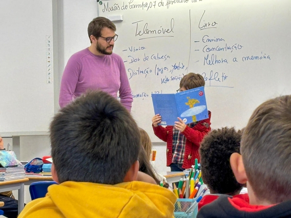 Para além da magia dos livros, os alunos e alunas participaram numa divertida sessão de leitura animada dinamizada pelo ator Diogo Carvalho, que deu vida às histórias e proporcionou momentos de encanto e criatividade junto dos mais jovens.