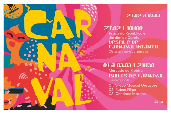 Mas a animação não fica por aqui. A Câmara Municipal promove, com o apoio da Junta de Freguesia de Tavira, entre 01 a 03 de março, pelas 21h30, no Mercado da Ribeira, bailes de máscaras, de acordo com a seguinte programação musical: