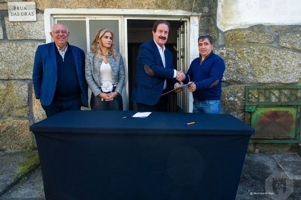 A Rua das Eiras, em Vilar do Monte, na Freguesia de Calde, acolheu hoje, dia 26 de março, a assinatura do auto de consignação formal para a empreitada de reabilitação de um edifício, nesta rua, para habitação familiar, no âmbito da Estratégia Local de Habitação.