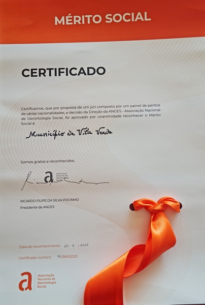 O Município de Vila Verde recebeu a distinção “Autarquia de Mérito Social”, atribuída pela Associação Nacional de Gerontologia Social (ANGES) e que visa destacar o trabalho mais relevante das autarquias locais na área social, com particular incidência no que toca à população mais idosa.
