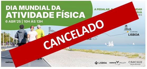Devido às previsões meteorológicas adversas para a manhã de domingo, 6 de abril, os Municípios de Cascais, Oeiras e Lisboa, alinhados na sua organização, decidiram cancelar o “Dia Mundial da Atividade Física”, que se iria realizar na Av. da Índia e Av. Marginal.