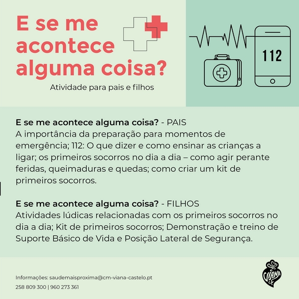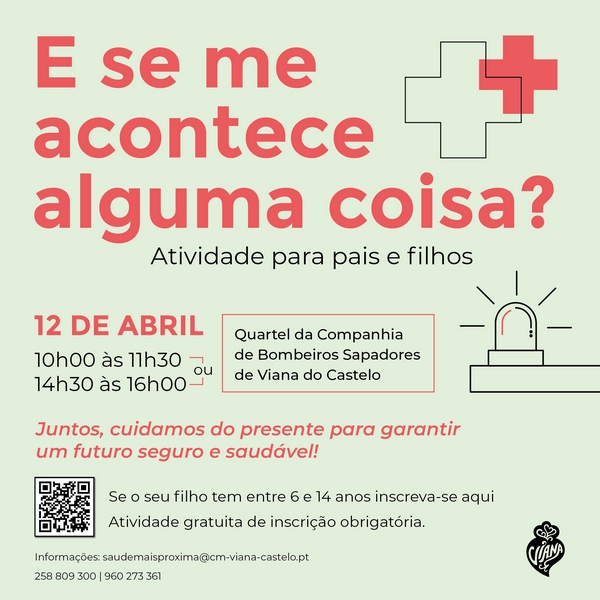 Este ano, o tema da Organização Mundial de Saúde (OMS) para o Dia Mundial da Saúde destaca a importância de "Inícios saudáveis, futuros esperançosos". Nesse sentido, acreditando que a prevenção e a informação são essenciais para um começo de vida seguro, dia 12 de abril será promovida a iniciativa "E se me acontece alguma coisa?" no quartel da Companhia de Bombeiros Sapadores de Viana do Castelo. Este promete ser um encontro onde pais, encarregados de educação e os mais pequenos terão a oportunidade de aprender noções essenciais de primeiros socorros.