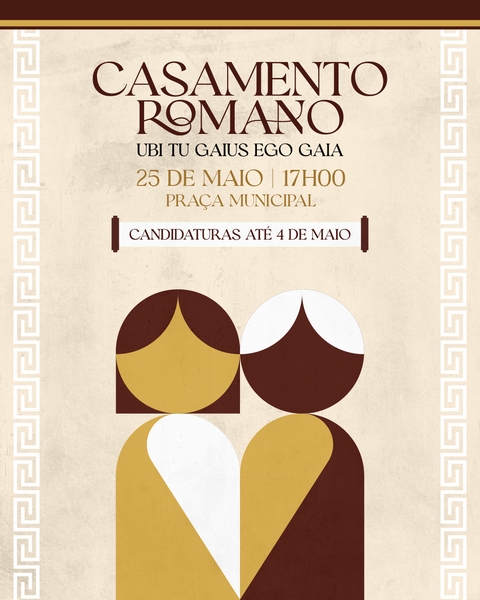 No âmbito da programação da "Braga Romana - Reviver Bracara Augusta", que se realiza de 21 a 25 de maio, o Município de Braga promove a IX edição do concurso do "Casamento Romano - Ubi Tu Gaius Ego Gaia".