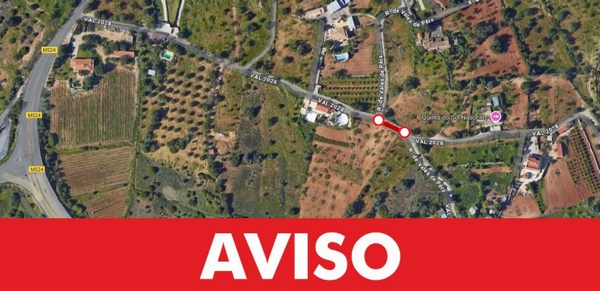 O Município de Silves informa que, devido a trabalhos de betonagem de obra particular, a estrada VAL 2028, na zona de Vales de Pêra, em Pêra, sofrerá corte de trânsito, no dia 21 de abril, entre as 08h30 e as 12h00.