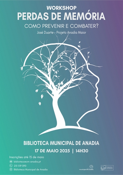 A Biblioteca Municipal de Anadia dinamiza, no próximo dia 17 de maio, pelas 14h30, mais um workshop, desta feita subordinado ao tema “Perdas de memória: como prevenir e combater?”, orientado por José Duarte, Coordenador do Projeto Anadia Maior – CLDS 4G, promovido pela Santa Casa da Misericórdia de Anadia.