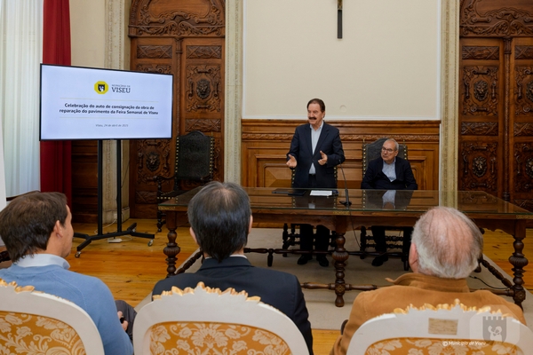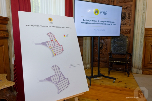 O Salão Nobre dos Paços do Concelho de Viseu acolheu hoje, dia 24 de abril, o ato de consignação da obra de reparação do pavimento da Feira Semanal de Viseu.