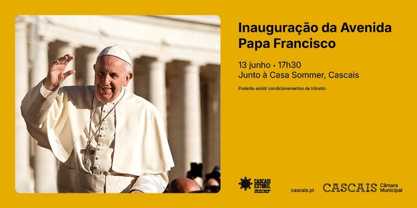 O Município de Cascais convida todos os órgãos de comunicação social a estarem presentes na cerimónia de inauguração da Avenida Papa Francisco, que terá lugar no próximo dia 13 de junho, às 17h30, junto à Casa Sommer, em Cascais.