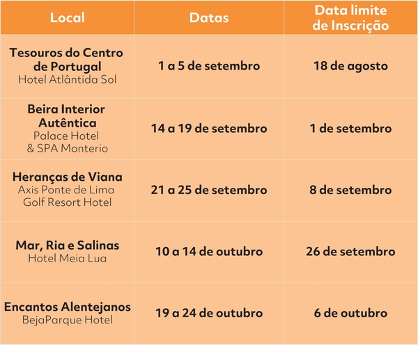 São organizados turnos de férias em diferentes locais de Portugal Continental, por períodos de 5 ou 6 dias.