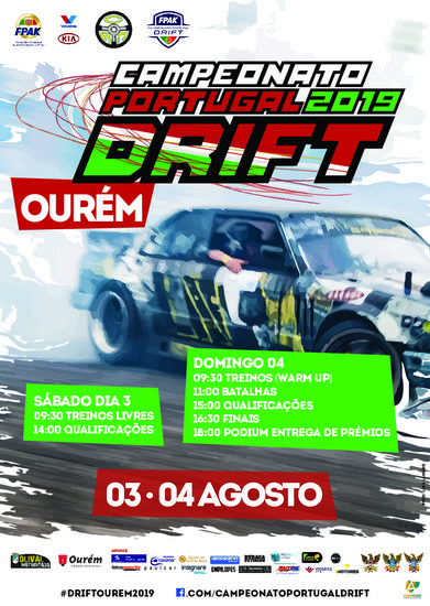 Ourém recebe nos próximos dias 3 e 4 de Agosto, a segunda prova do Campeonato de Portugal de Drift organizada pelo Olival Motorizado. A competição vai desenrolar-se no Parque da Feira perto do Centro de Negócios numa posta desenhada para o efeito.