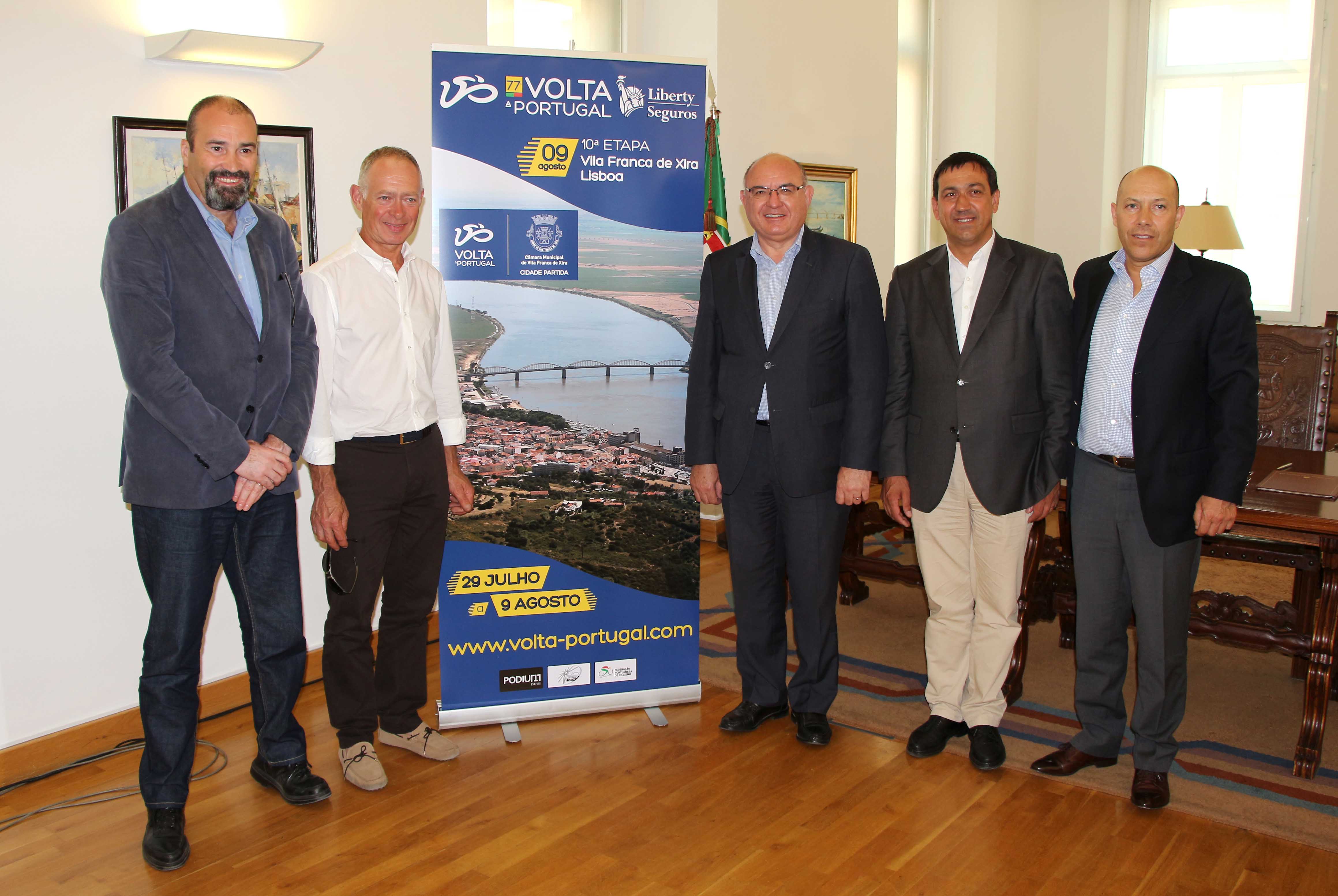 A Volta a Portugal em Bicicleta está de regresso à Lezíria! Durante três anos, Vila Franca de Xira volta a ser uma das cidades anfitriãs do ciclismo nacional. O protocolo assinado esta sexta-feira, 29 maio, entre a autarquia e a organização da prova torna possível o regresso da “caravana” a Vila Franca de Xira, já este ano, na partida da última etapa da 77ª Volta Portugal Liberty Seguros. O compromisso entre o município e a Podium Events estende-se até 2017.
