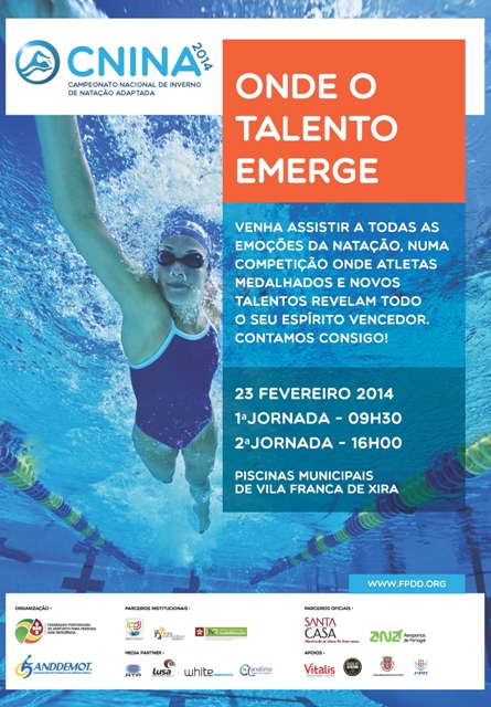 No próximo domingo, dia 23 de Fevereiro, a partir das 09h30, a Piscina Municipal de Vila Franca de Xira recebe a edição de 2014 do Campeonato Nacional de Inverno de Natação Adaptada (CNINA).