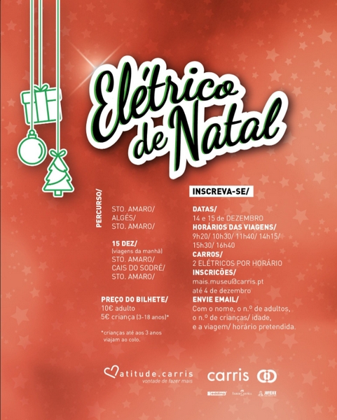 Nos dias 14 e 15 de dezembro o Elétrico de Natal volta a convidar as famílias a viajar num elétrico conduzido pelo Pai Natal.
