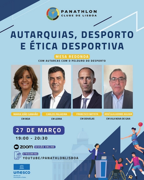 Além disso, a sua influência estende-se à promoção dos valores éticos do desporto, contribuindo para a formação de cidadãos responsáveis e conscientes, pelo que numa iniciativa única no panorama da Ética Desportiva, o Panathlon Clube de Lisboa promove uma sessão, 100% online, dia 27 de março, entre as 19h e as 20h30, com o objetivo de debater, com um painel de quatro Autarcas, as suas estratégicas de abordagem de tópicos relevantes do Desporto e Ética Desportiva, procurando trazer experiências diversas do ponto de vista territorial, demográfico e desportivo.