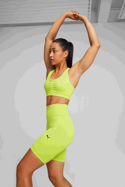 Leggings “SHAPELUXE Seamless Short Tight“ [disponível em quatro cores: PUMA Black, Lime Pow, Gamet Rose e Teak]: Costura interna de 6” com ajuste de cintura alta e tecido de escultura compressiva