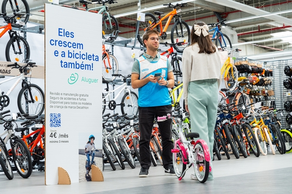 Através do “Serviço de Subscrição”, o cliente pode usufruir de uma bicicleta de criança desde 4€ por mês e beneficiar de revisão gratuita após 6 meses, manutenção anual gratuita e um seguro contra danos acidentais do produto. Este modelo não só oferece uma solução económica para as famílias como também promove o uso consciente de recursos, garantindo que as bicicletas sejam reutilizadas e recicladas adequadamente, reduzindo o desperdício e o impacto ambiental. Para poder usufruir do “Serviço de Subscrição”, o cliente deve deslocar-se a uma loja Decathlon e solicitar o serviço a um colaborador. Pode encontrar a lista dos produtos disponíveis para o aluguer.