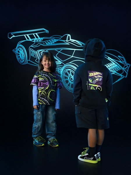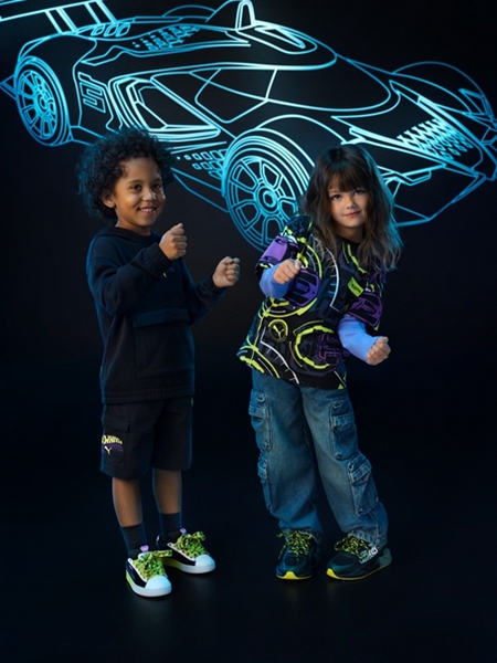 Nesta coleção infantil, a colaboração entre as duas marcas destaca o inconfundível ADN do design e imagens da Hot Wheels, aplicando-o numa gama de vestuário e calçado que inclui modelos nostálgicos dos ténis de basquetebol e de corrida da PUMA.