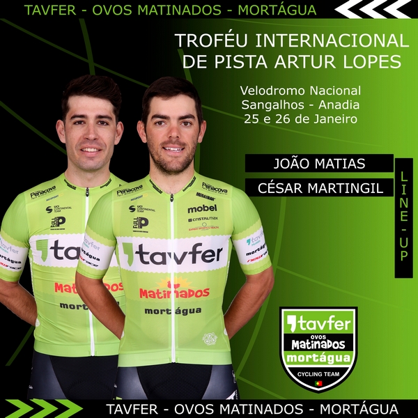 A Tavfer-Ovos Matinados-Mortágua tem o prazer de anunciar que os seus atletas João Matias e César Martingil irão participar no Troféu Internacional de Pista Artur Lopes, que acontecerá nos dias 25 e 26 de janeiro no Velódromo Nacional de Sangalhos, em Anadia.Este evento de alto nível reúne 126 atletas de 20 países, prometendo um espetáculo de ciclismo de pista de classe mundial.