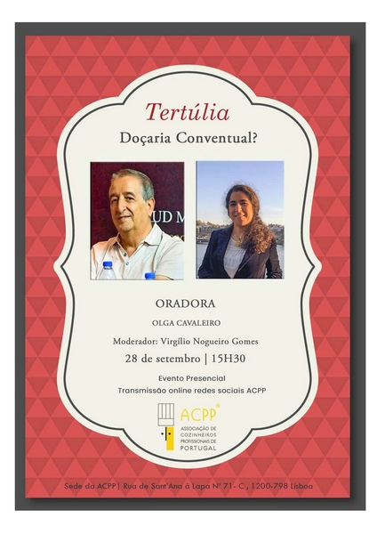 Tertúlia Temática - Doçaria Conventual? Oradora, Olga CavaleiroPublicado em terça-feira, 19 de setembro de 2023 | Imprimir fShare Tweet Anterior Seguinte