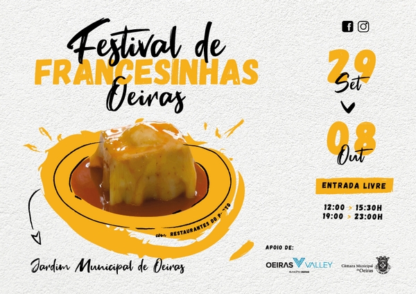 A 4ª edição do Festival de Francesinhas pretende trazer, através de quatro restaurantes - Alfândega Douro, Alicantina, Cufra e Taberna Portuense - o sabor da cidade do Porto até Oeiras, numa das mais famosas iguarias. Este ano há uma novidade que é a opção de francesinha sem glúten para tornar o festival mais inclusivo para quem tenha restrições alimentares.