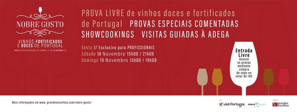 O Município de Oeiras, em parceria com a Grandes Escolhas, está a organizar a 2ª edição do ‘Nobre Gosto’, o único evento exclusivamente dedicado aos vinhos fortificados e doces portugueses, que terá lugar no Palácio Marquês de Pombal, em Oeiras.