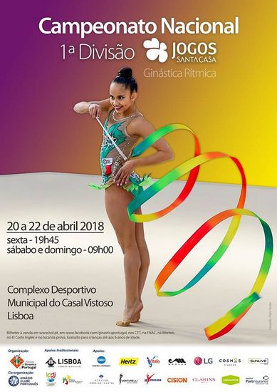 Campeonato Nacional da 1ª Divisão – Jogos Santa Casa Publicado em sexta-feira, 20 de abril de 2018 | Imprimir Decorre entre os dias 20 e 22 de abril, o Campeonato Nacional da 1ª Divisão de Ginástica Rítmica – Jogos Santa Casa. A competição junta no Complexo Desportivo Municipal do Casal Vistoso, em Lisboa, 137 ginastas, em representação de 20 clubes. fShare Tweet Anterior Seguinte