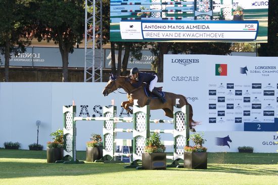 O segundo dia da Longines Global Champions Tour Cascais teve início hoje, pelas 18h15, com a terceira prova “Tabela A ao Cronómetro”. O português, originário de Viseu, António Matos Almeida foi o grande vencedor desta prova, que tem obstáculos a 1,45m do chão, terminando o percurso em 57 segundos e 84 centésimos, ao lado de Irene van de Kwachthoeve. O Prize Money desta prova foi de 25.000,00€.