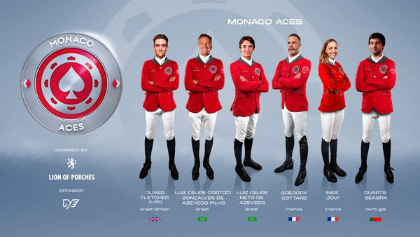 Monaco Aces é o nome da equipa patrocinada pela LION OF PORCHES que pretende deixar a sua marca no Global Champions League. Liderada por Gregory Cottard, a equipa é também composta por Oliver Fletcher, uma das grandes promessas que teve um resultado brilhante, o ano passado, no Longines Global Champions Tour de Londres. A representar Portugal está Duarte Seabra que participa, pela primeira vez no GCL, mas já não é alheio à pressão de eventos com esta envergadura. Completam a Monaco Aces, a jovem francesa Inês Joly, o veterano Luiz Felipe Azevedo Filho e Luiz Felipe Azevedo Neto, os três estreantes neste campeonato.